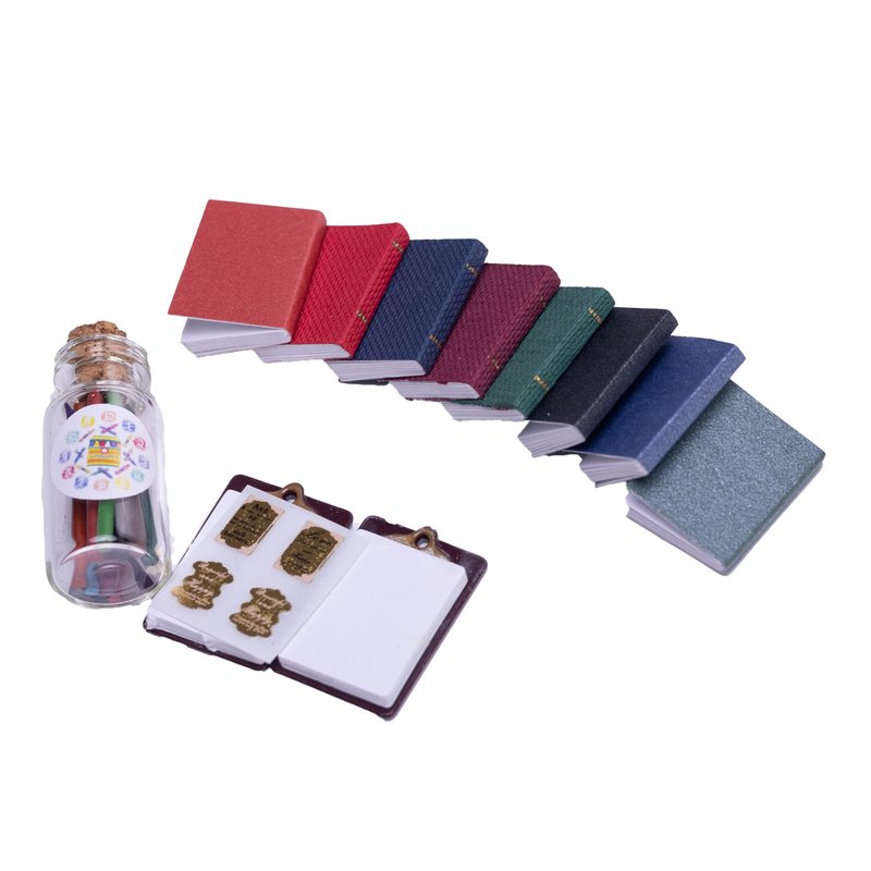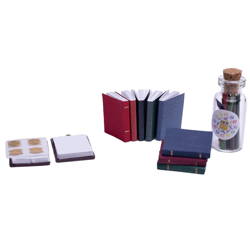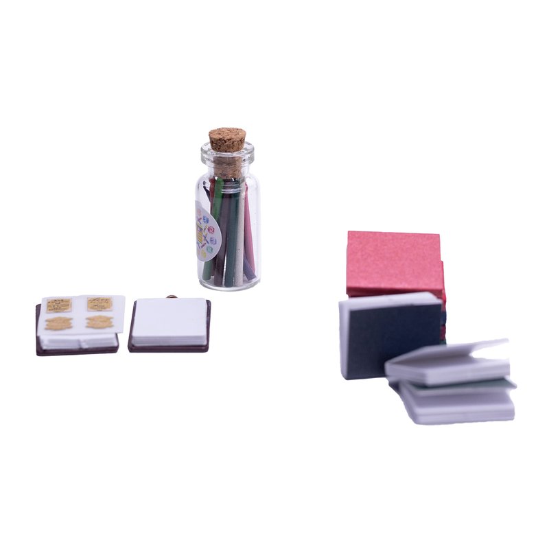 - These tiny dollhouse books and clipboards are made of environmental paper, the crayon is made of safe quality wax materials. Odorless and Durable.
