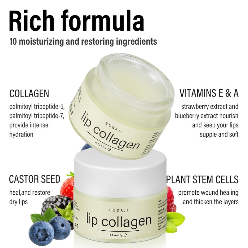 SUDAJI Hydrating Lip Gloss Balm, Lip mask,Lip butter,Lip Collagen Peptide Sleeping Mask: 20g Collagen Lip Plumper Balm - Overnight Lip Wrinkle Treatment Butter - Advanced Lip Line Filler Repair to Nourish Hydrate Dry Cracked Lips SUDAJI lip butter not only gives you a perfect gloss finish but also offers full lip treatment and protection from cold or dry weather, and dehydration. It gently removes dead skin and repairs dry, chapped lips. More Than Your Average Lip Balm-Rich formula,10 moisturizing and restoring ingredients,Collagen, Palmitoyl tripeptide-5, Palmitoyl tripeptide-7, provide intense hydration,castor seed moisturize, heal, and restore dry lips, Plant Stem Cells& Silk Protein Amino Acids-promote wound healing and thicken the layers,Vitamins A, E & Strawberry Extract nourish and keep your lips supple and soft. Safe and effective -We stick to sustainable ingredients and formulas,we wanted you to feel safe and gorgeous while using our product, Lip mask is non-sticky and easily melts onto your lips How to use -DAY:Apply in a thin layer to nourish your lips during the day as a lip balm or mix it with your favorite lip product! NIGHT:Apply a generous amount to your lips as a lip mask before bedtime, and enjoy the soft, hydrated Lips in the morning With regular use, SUDAJI overnight lip mask can help you achieve healthier-looking lips that don’t peel or crack as much. SUDAJI lip sleeping butter is your secret to soft, smooth, and kissable lips
