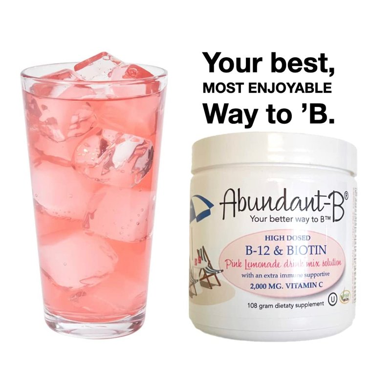 Now you can enjoy a winning high-dosed combination of flavor and function with Abundant-B! We've wrapped up 5,000 mcg's of methyl B-12 and 5,000 mcg's of Biotin plus our prized, high dosed vitamin C into a winning pink lemonade drink mix solution... because there just needed to be a better, more delicious way to B! Fight fatigue and what that represents and strengthen your immune system forcefully and flavorfully with Abundant-B because... like with all things, you can't always judge a book by it's refreshing, delicious, pink cover! ----------------------------------------------------------- Why B-12? Without enough red blood cells, your tissues and organs don’t get the oxygen they need resulting in anemia and and a feeling of fatigue. This applies to your gut as well since a lack of oxygen here will lead to daunting digestive issues. Why Biotin? You'll need biotin in order to produce keratin, a protein that promotes strong nails and hair for which it is famously known, but it has another claim to fame in which you might not be aware... Biotin can help regulate the bad fats in your blood too.. Our refreshing Abundant-B offers all this support effortlessly and deliciously! Cheers to you and our brand new pink lemonade drink mix solution! Oh and yes... we added our prized vitamin C too of course which also contributes to supporting lowered LDL as well!! Our Sufficient C LLC family of drink mixes allows you the convenience of mixing our drink mixes together if you would like to combine the flavors and functions of our unique drink mixes. Check it out and "C" for yourself!