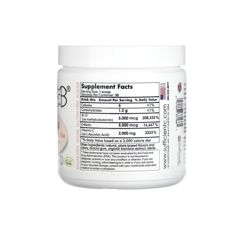 Sufficient-C Abundant-B High-Dose Methyl B-12 and Biotin Pink Lemonade Energy Drink Mix Solution - Flavor w/Function in Each Refreshing sip!