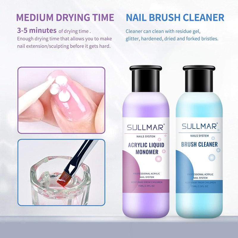 SULLMAR Acrylic Monomer Liquid 75ml 2.5FL.OZ & Nail Brush Cleaner 75ml 2.5FL.OZ for Acrylic Nails