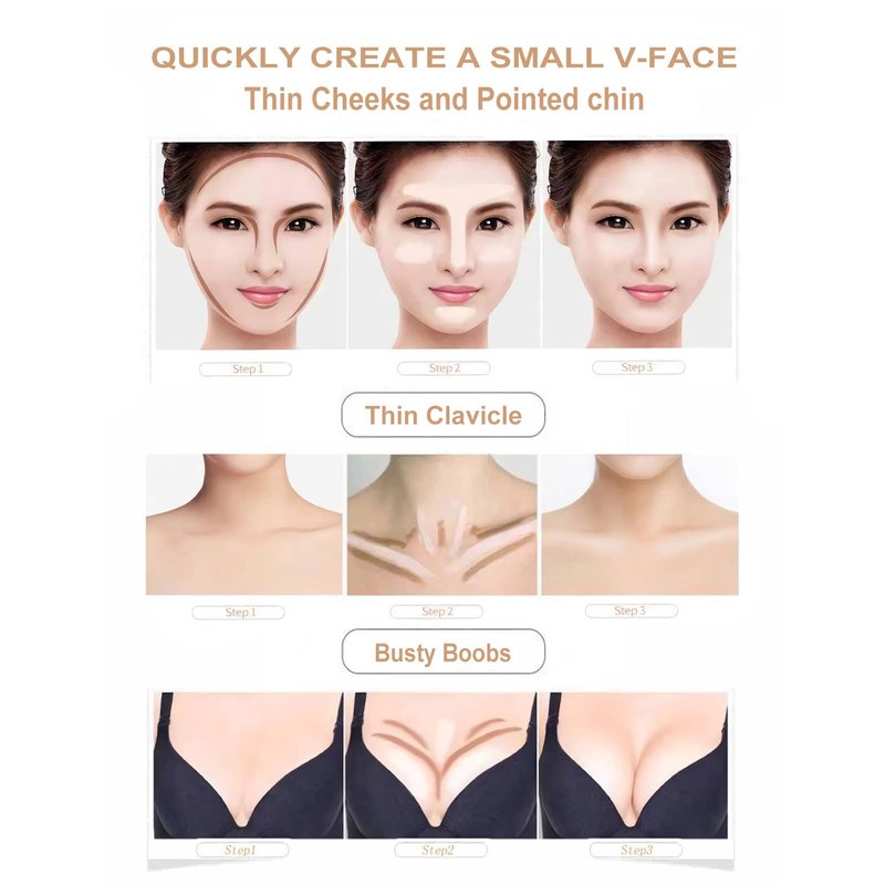 - 【How to Use】Using a bronzer contour stick, apply the shadow color to your cheekbones and cupids, as well as the sides of your nose, hairline, and under your jawline. Apply highlighter to T-zone, cheekbones and chin. Then apply blush to your cheeks. then use a soft makeup brush to smooth out until it blends into your skin for a natural, perfect matte finish look.