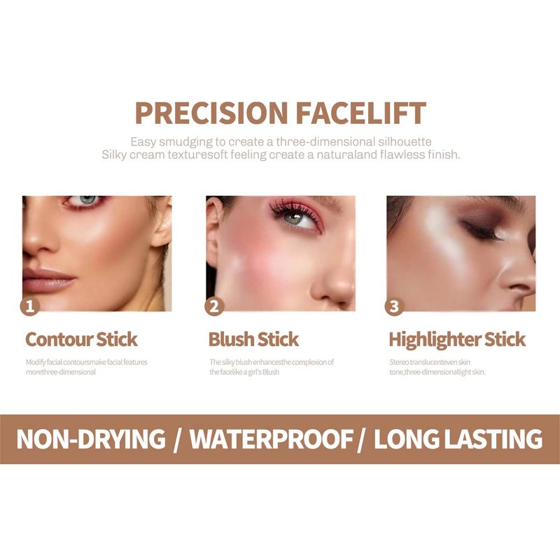- 【Face Makeup Stick】This trio contour stick makeup kit has shades that include blush,bronzer contour and highlighter. The ultra-blendable and buildable nature of this makeup stick makes it easy to sculpt your face,gives a multidimensional sculpted look,
