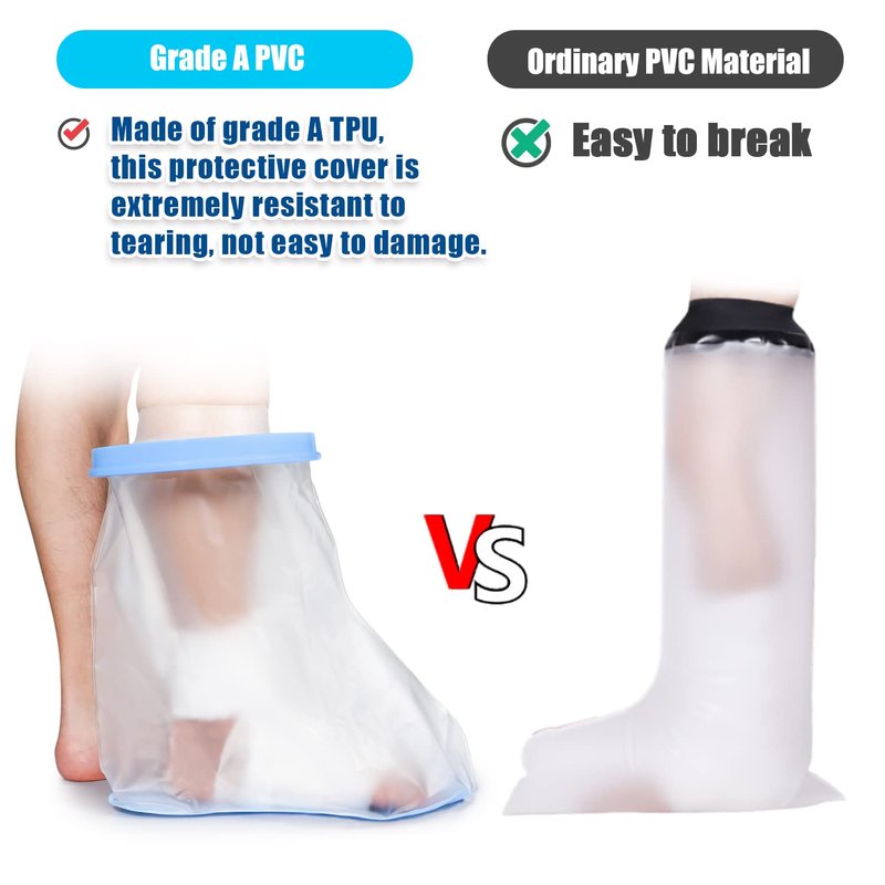 - 【NON-SLIP DESIGN】- Made of Grade A PVC, this leg cast cover is extremely resistant to tearing, not easy to damage,Non-slip rubber grip under the cast cover provides additional traction while showering to avoid slips.Made with NON-LATEX materials.