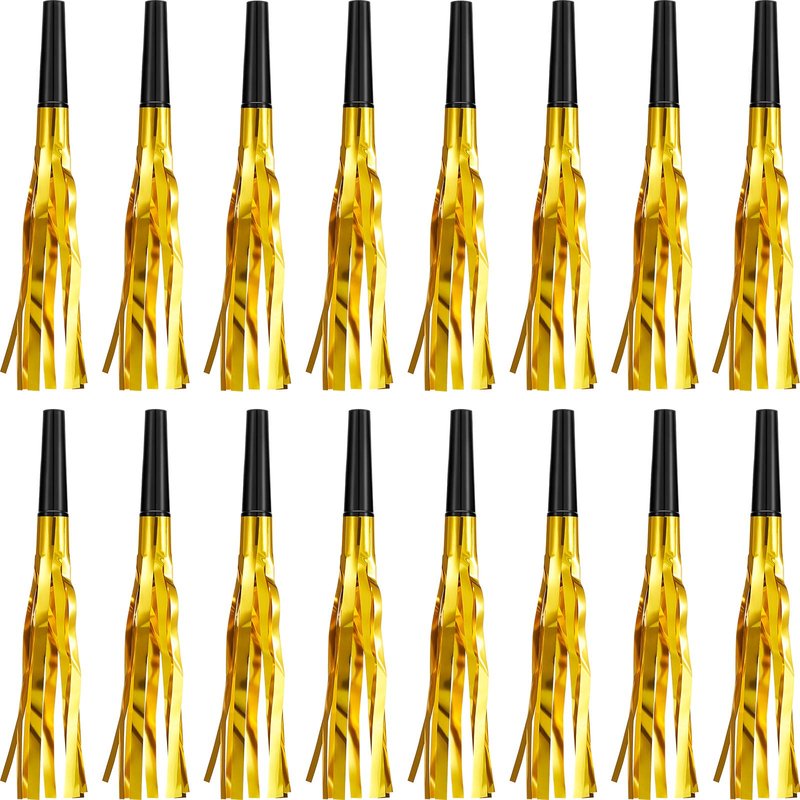 Sumind 24 Pieces Gold Noise Makers Glitter Noise Makers Metallic Fringed Party Blowers for Adults Birthday Graduation Sporting Events 2025 New Years Party Favor Supplies