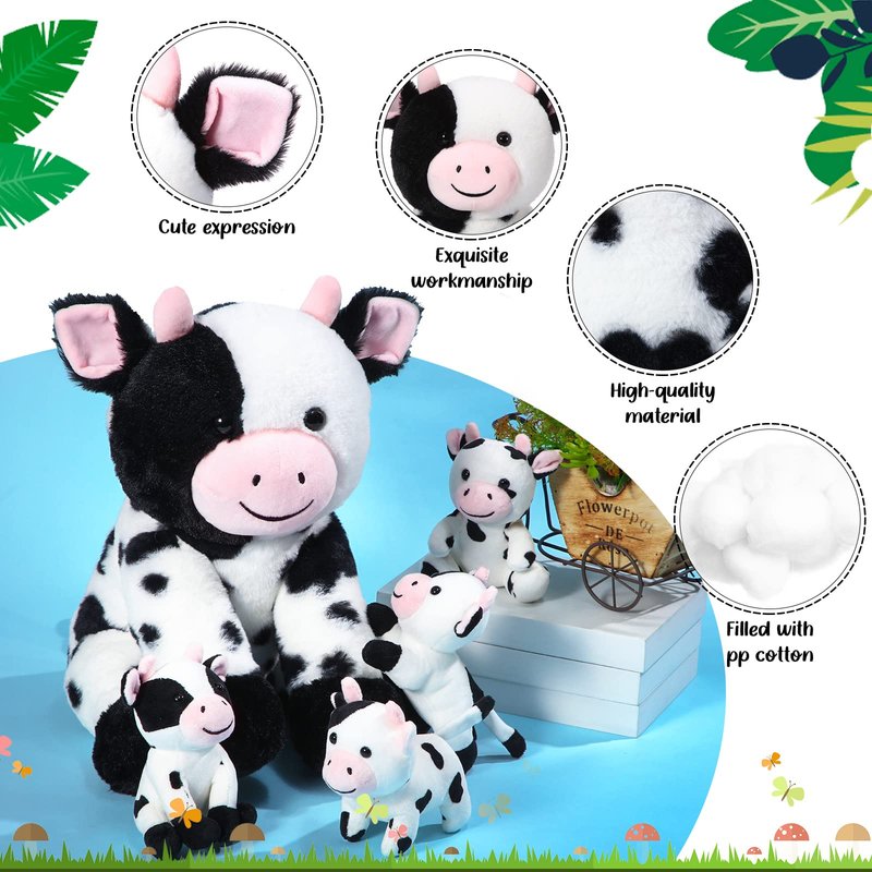- 5 In 1 Fun Plush Toys: you will receive a total of 5 cow plush toys, including a mother cow in sitting and 4 baby cow plush toys in different poses, cute and lively, easy to get people's attention