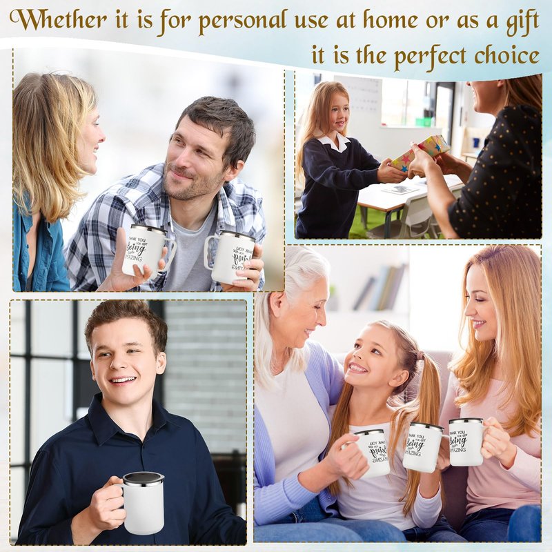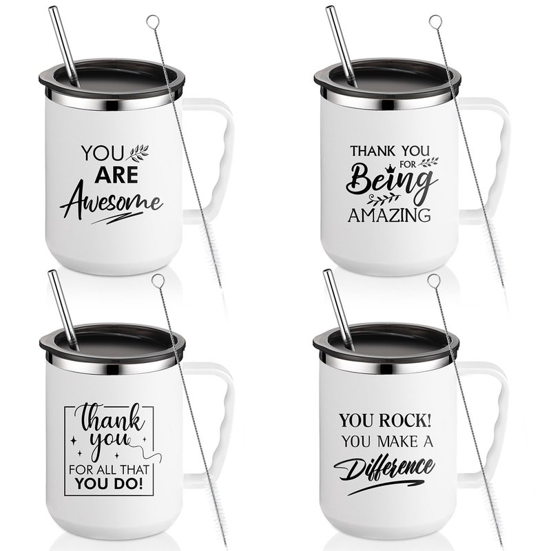 Sumind 6 Pcs Thank You Employee Appreciation Gifts Bulk 17 oz Inspirational Stainless Steel Coffee Mugs with Handle Lid Straw for Staff Employee Coworker Teacher Gifts(White, 4 Pcs)