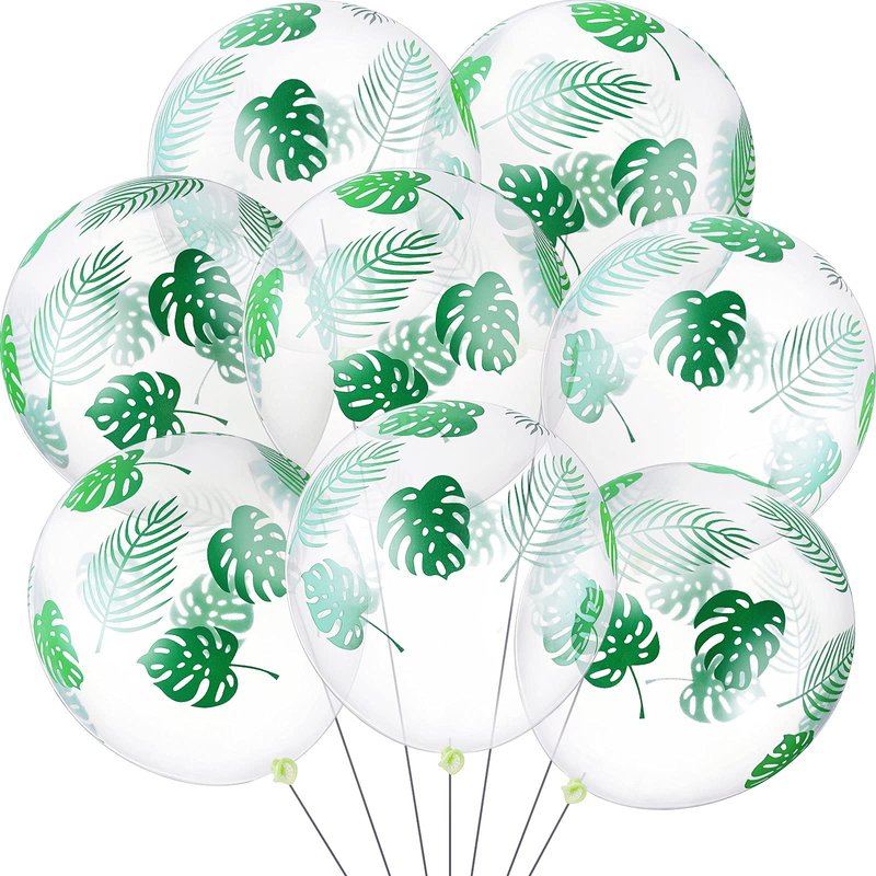 80 Pieces palm leaves balloons jungle safari theme balloons hawaiian party balloons 12 inch clear latex balloons for birthday jungle tropical partydecorationSpecifications:Size: 12 inches (after inflation)Color: as shown in the figureMaterial: latexPackage includes:80 x Palm leaves balloonsWarm tips:Manual measurement, please allow slight errors on size.The colors may exist slight difference due to different screens.The amount of gas that a balloon can fill has its limit, please do not exceed the maximum value it can withstand.Take care to keep these palm leaf balloons away from pointed objects, direct sunlight, high temperatures, strong winds and excessive friction.There may be a little natural latex smell at first, and it will dissipate automatically after a period of use.