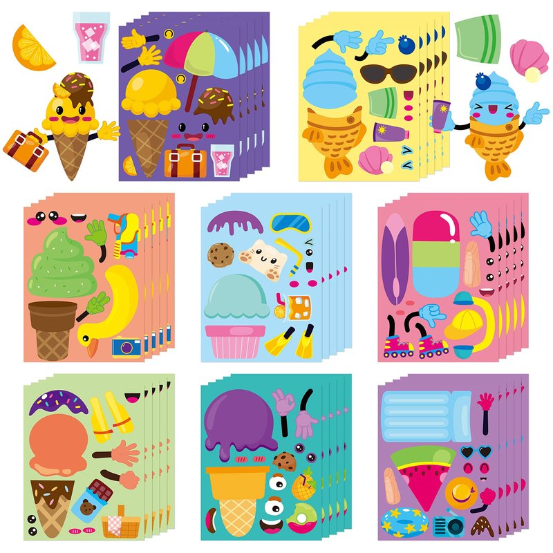 - Make your Own Face Stickers- The package includes 40 sheets of ice cream face stickers. 8 different style of summer ice cream face sticker sheets. Enough for girl or kids to make different style by using their creative summer party imagination.