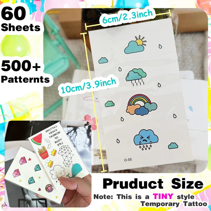 Summer Kids Tiny Temporary Tattoos, 60 Sheets Waterproof Cute Tattoo Stickers for Girls Women, Small Fake Tattoos for Party Favors Supplies Gifts