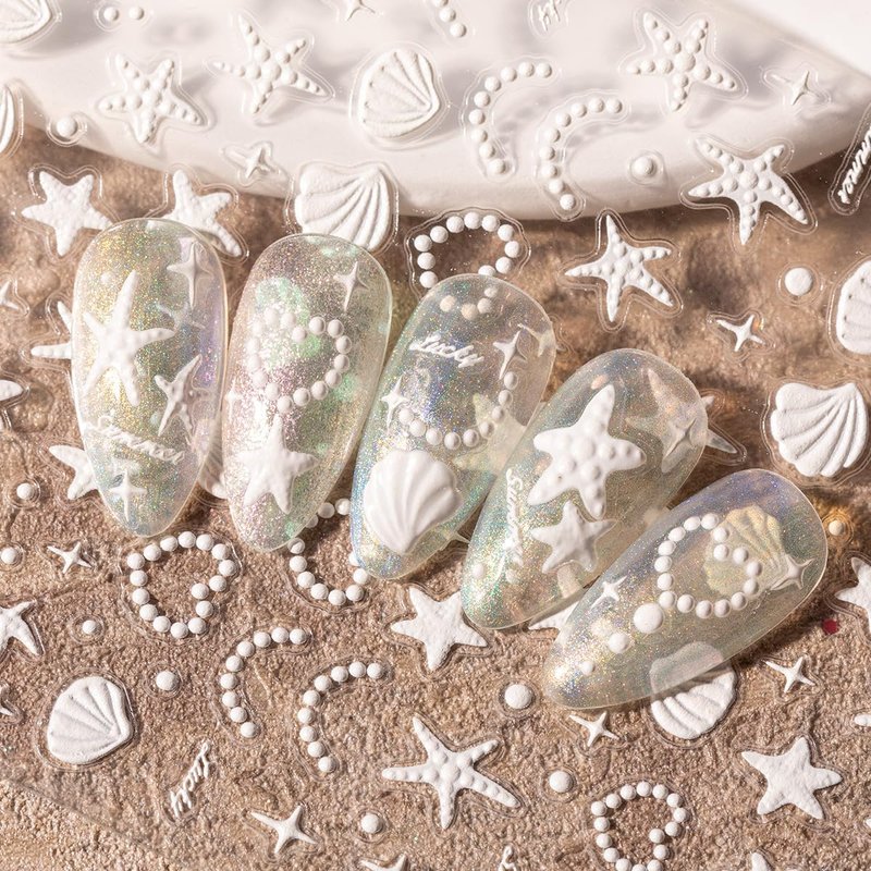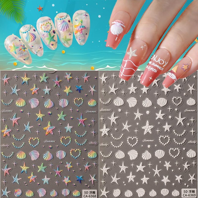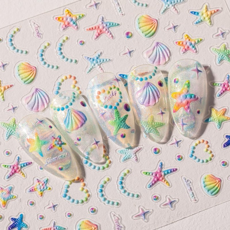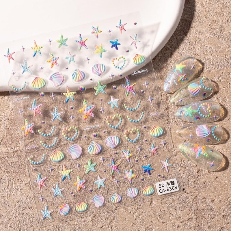 - 【How to Use】:Just take the colorful starfish shell nail stickers off and stick it gently on the nail. You can also cover it with finish paint apply top coat to make the sticker long lasting.