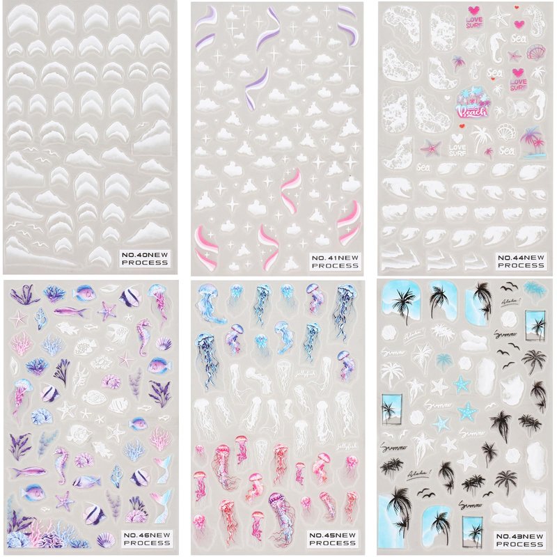 - Ocean Nail Designs:You will get 6 sheets 3d beach nail adhesive stickers, unique and cute designs, assorted patterns of different colors and patterns. Perfect for nail designs accessories.
