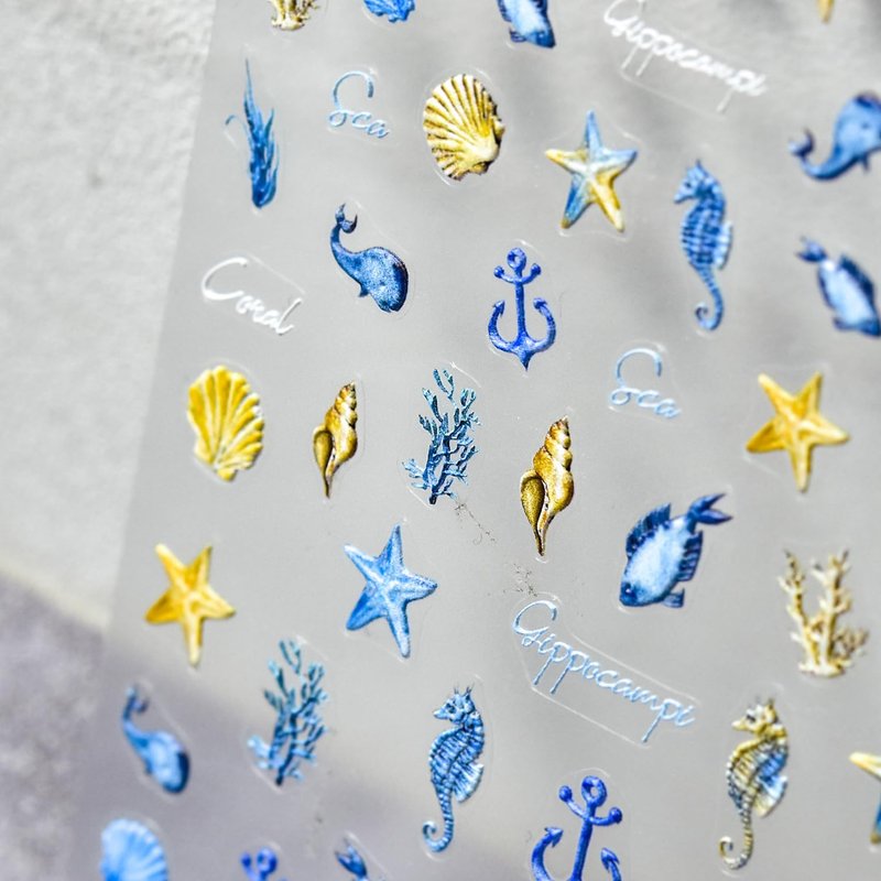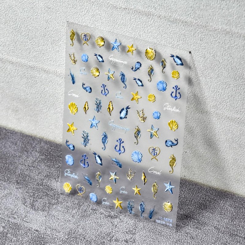 Summer Nail Stickers for Nail Art, 5D Embossed Nail Decals Shell Starfish Design Nail Art Supplies Self Adhesive Ocean Nail Art Stickers Cute Nail Decorations for Women Girls Manicure Accessories