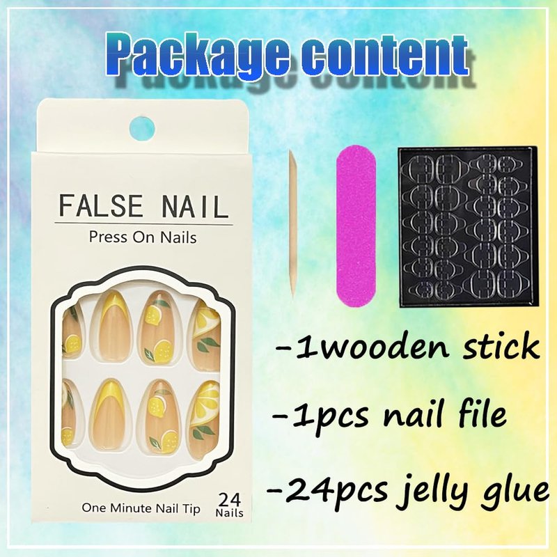 - 【Excellent Quality】Lemon fake nails made of high quality acrylic material, durable and elastic, can be modified to better fit your nail shape, the use effect is comfortable and natural.