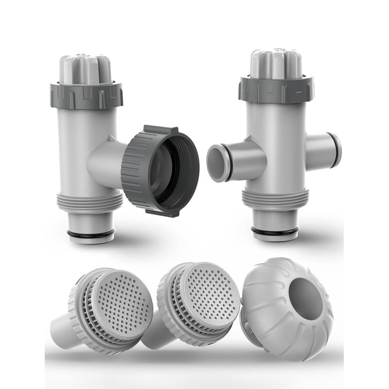 - 【All In One Kit】The replacement pool parts kit include: 1* split hose plunger valve, 1* plunger valve, 2* strainer grids for 1.25-inch pool fitting, 1* inlet water nozzle for 1.5-inch pool fitting.