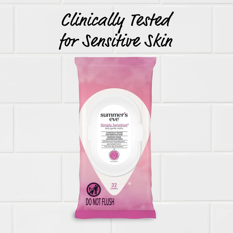 - Summer’s Eve Simply Sensitive Daily Gentle Feminine Wipes removes odor-causing bacteria