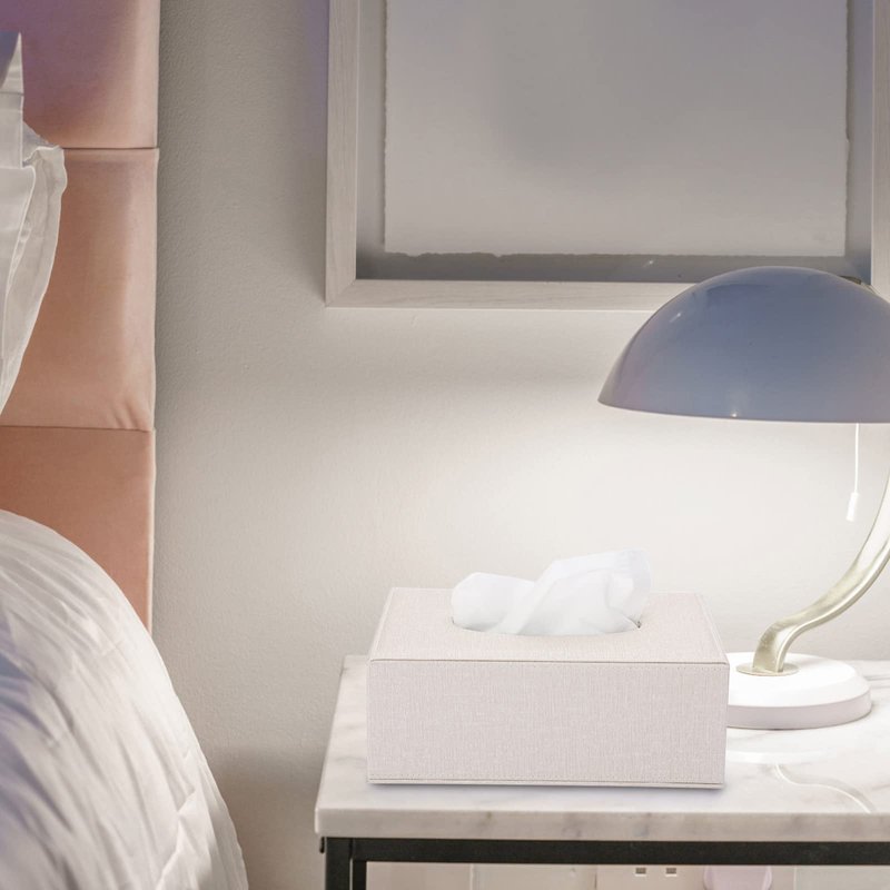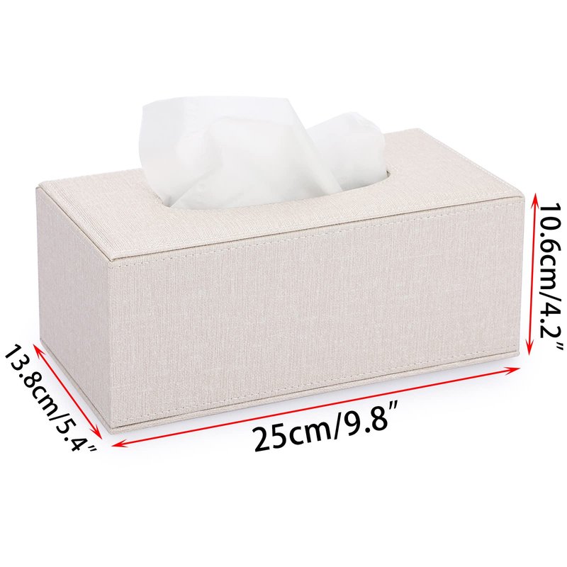 - High Quality - The attractive tissue box cover is made of high quality MDF(inside) + Linen (outside) materials; It's sturdy and durable to keep the tissue box from being crushed; The stitching is not only even and neat, but also contrasts nicely with the beige material.