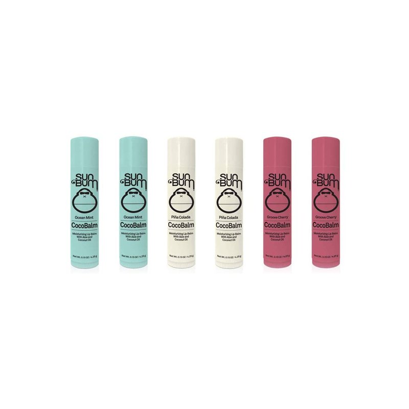 Sun Bum CocoBalm | Vegan and Cruelty Free Moisturizing Lip Balm with Aloe and Coconut Oil | Pina Colada, Ocean Mint, Groove Cherry (.15 oz) | Pack of 6 (2 of Each Flavor)