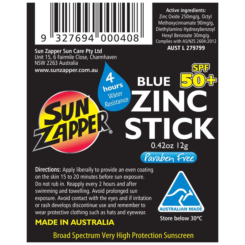 For over 25 years Sun Zapper Zinc Sticks and Products have provided hundreds of thousands of people across 40 different countries with the highest degree of broad spectrum UVA+UVB SPF 50+ and 4 hours water resistant protection.