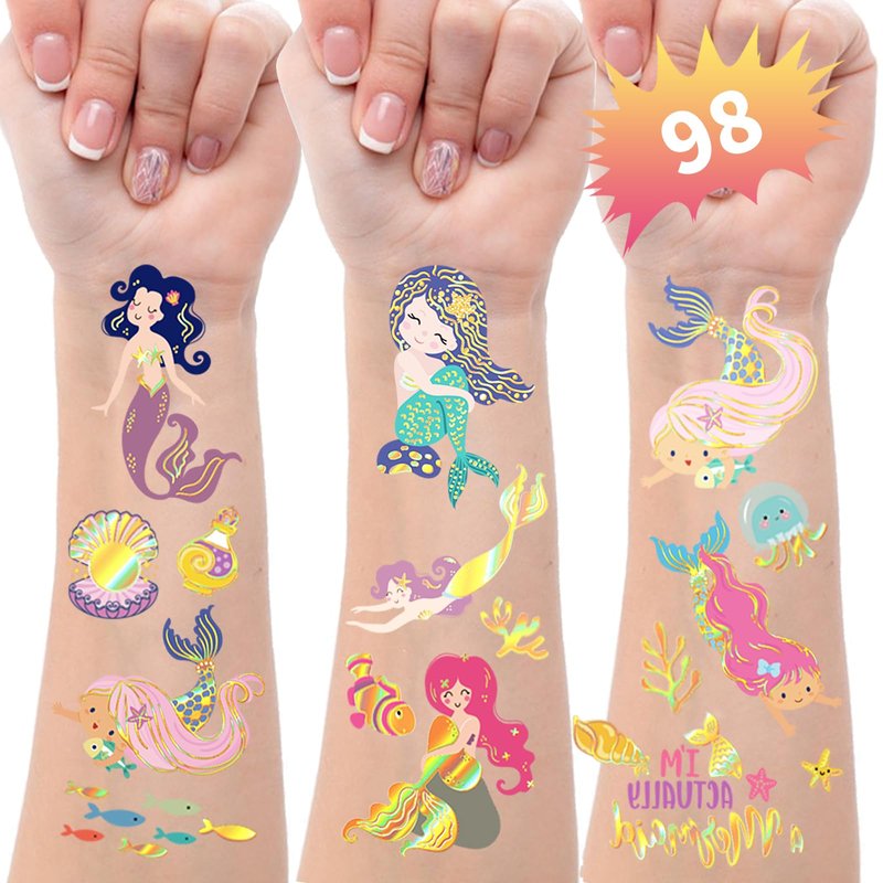- 98Pcs Mermaid temporary tattoo patterns: Our pack of temporary tattoos includes over 98Pcs different styles of mermaid designs, ensuring there is something for everyone at your mermaid-themed party.