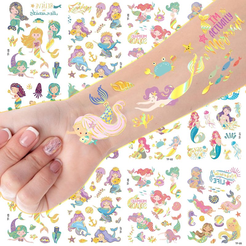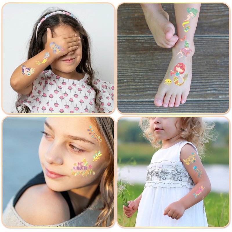 - Great gift bag fillers: Looking for unique and exciting goodies to fill your gift bags with? These mermaid temporary tattoos are a fantastic choice. Kids will love showing off their mermaid-inspired body art.