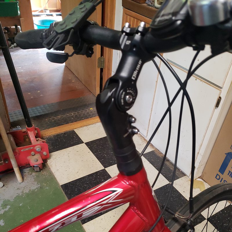 Use the bike stem to achieve a more comfortable riding position, the pain caused by the original setup in shoulders/arms/back had to be corrected.