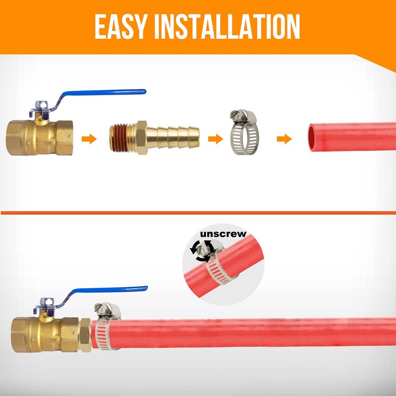 - 【PACKAGE INCLUDE】: 3/8'' barb X 1/4'' NPT male brass air hose barb fittings with sealant × 12; Hose clamp × 12