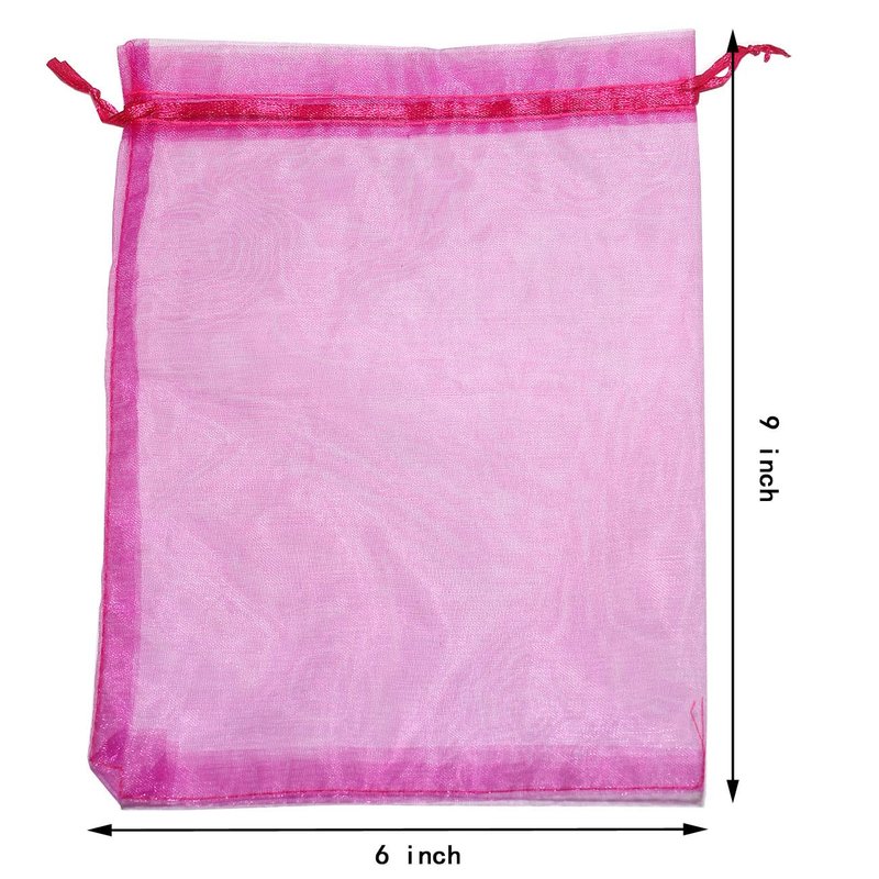 SUNGULF 100pcs Organza Pouch Bag Drawstring 6"x9" 16x22cm Strong Gift Candy Bag Jewelry Party Wedding Favor (Hot Pink)