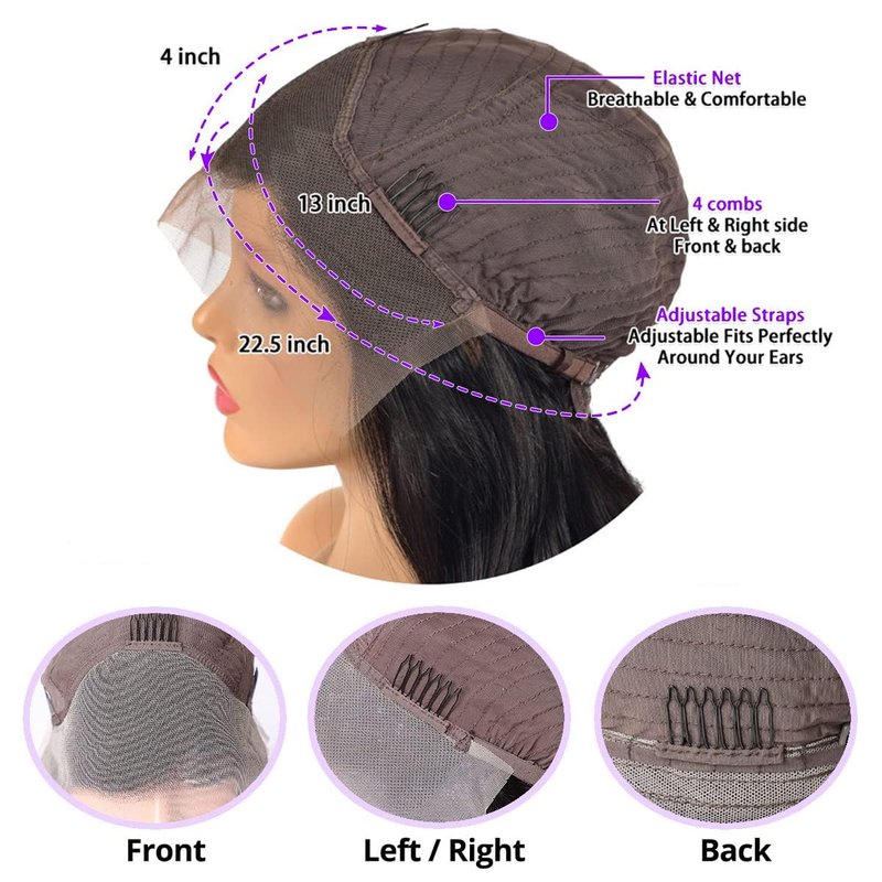 - 4.Cap Size: 13X4 HD Lace Front Wigs with Baby Hair, Makes The Hair More Natural, Physical High Temperature Shaping, Does Not Contain any Chemical Substances, Wear by Hand Sewing,Can Design any Shape , Suitable for DIY. Breathable & Durable Lace Material Make it More Comfortable.