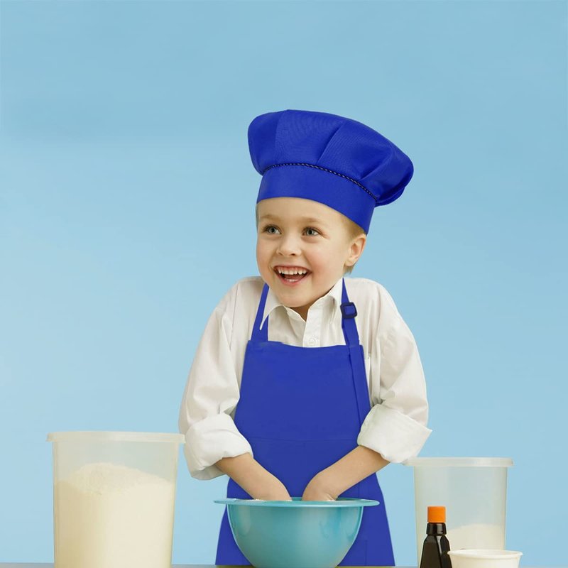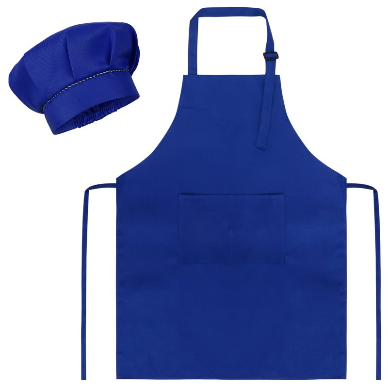 SUNLAND Kids Apron and Hat Set Children Chef Apron for Cooking Baking Painting (Royal Blue, M)