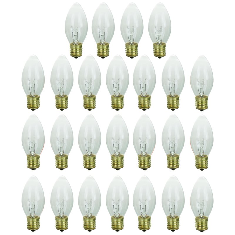 Sunlite Incandescent C9 Colored Night Light Bulb, 7 watts, 120 Volts, Intermediate E17 Screw Base, 2000 Rated Hours, Christmas-Lights Nightlight, Clear, 25 Pack