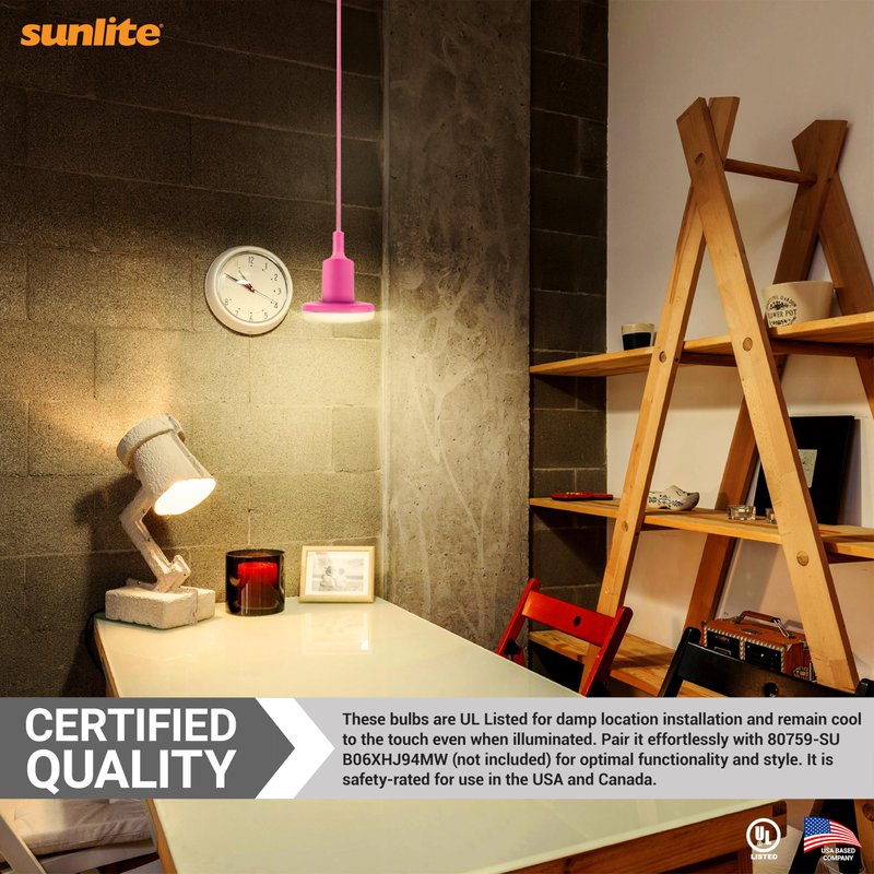 Sunlite UFO Pendant Fixture LED Light Bulb, 11 Watt, (50W Equivalent), 800 Lumens, Medium (E26) Base, Pink Housing, 30K-Warm White