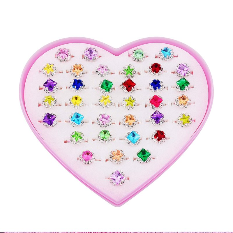 - 【Unique design】Designs of 36 kids play rings that will make your daughters mesmerized. Usage of vibrant colors and lovely designs, shown as picture.
