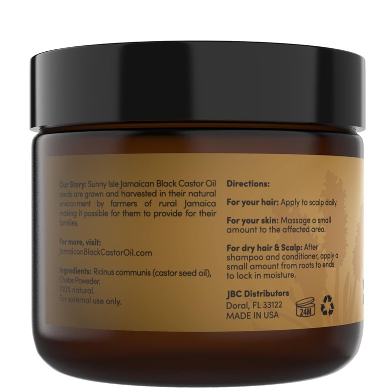 - JAMAICAN BLACK CASTOR OIL: Sunny Isle Jamaican Black Castor Oil comes from castor seeds (Rincinus Communis) that are organically grown and processed the traditional Jamaican way to extract the most potent version of this wonder oil. The seeds are roasted longer, giving the oil a darker color and more ash content than non-traditionally processed castor oil, which makes it more effective.