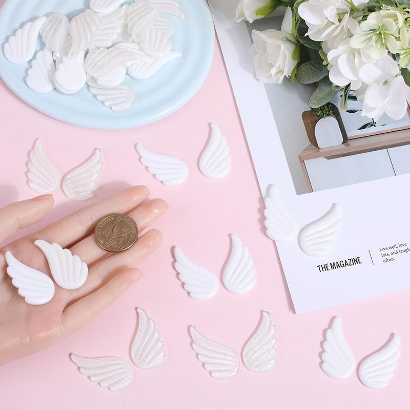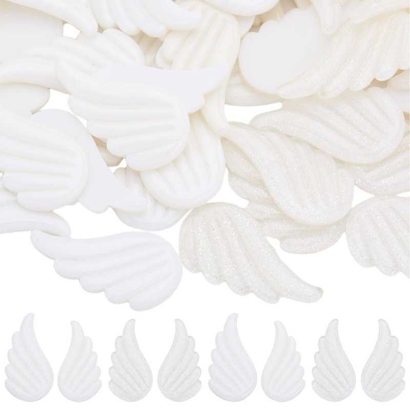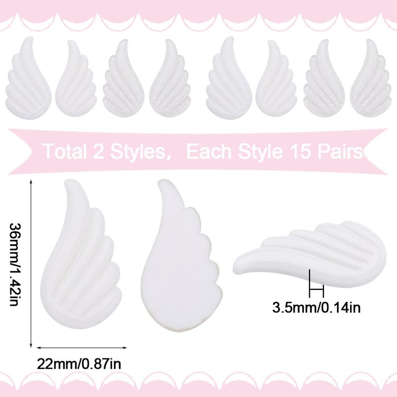 - 2 COLORS 30 PAIRS FLAT BACK RESIN CABOCHONS: There are 2 colors wing patches, 15 pairs of each style, for a total of 30 pairs of wings. The 2 colors of white wings both symbolizing purity and innocence.