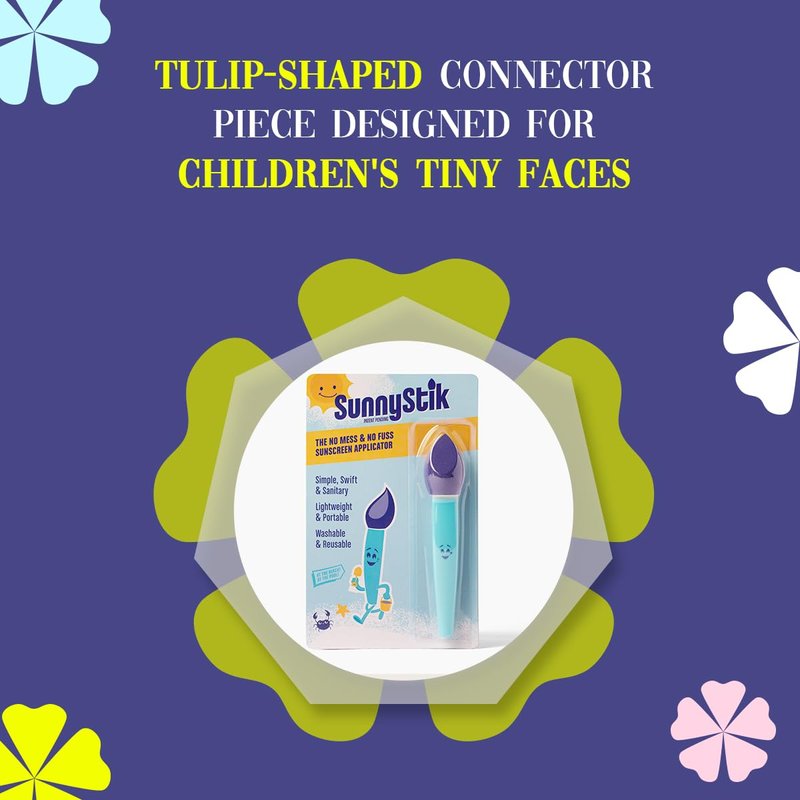 SunnyStik: Kid Friendly No-Mess No-Fuss Sunscreen Applicator, Tulip Shaped Connector for Precise Application | Effortless Coverage on Tiny Faces, Nose, Ears, Chins & Hands | Reusable & Vibrant Design