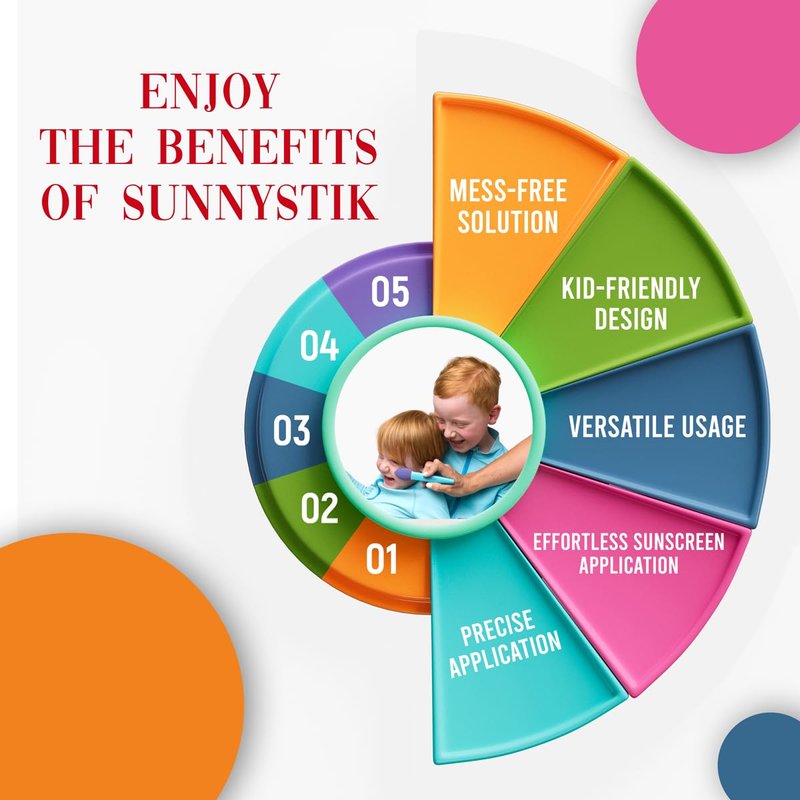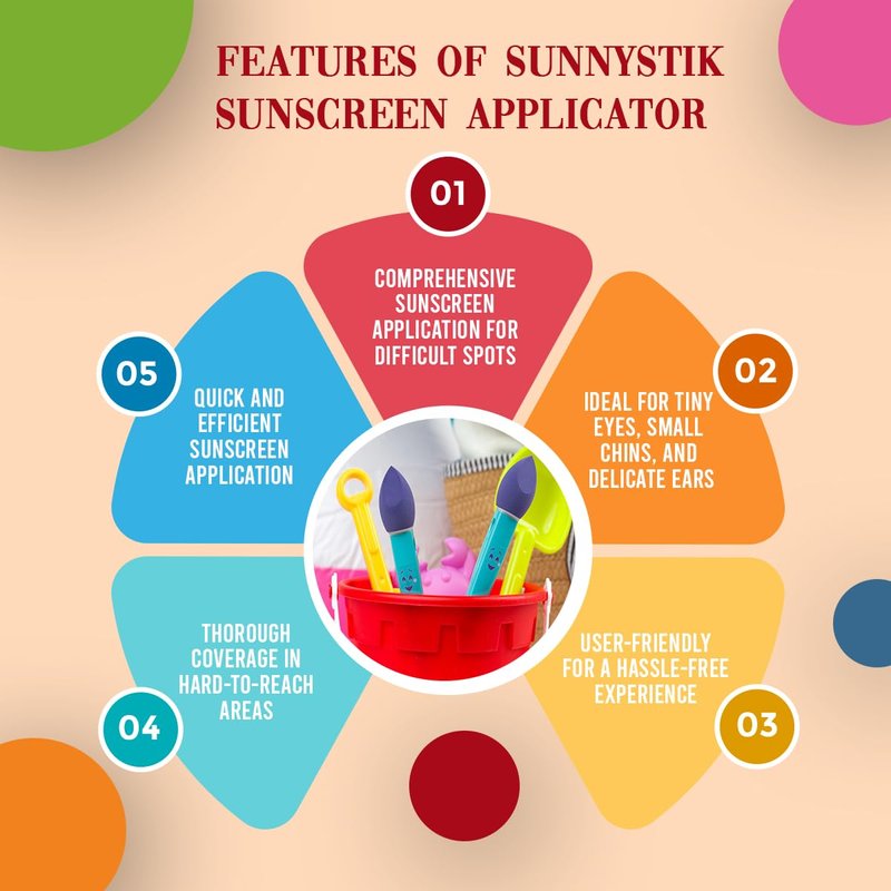 - VERSATILE USAGE: Addressing the challenge of reaching difficult spots, SunnyStik is versatile in ensuring comprehensive sun protection. Whether it's tiny eyes, small chins, or delicate ears, this innovative applicator simplifies the process, making sunscreen application a breeze. The versatility of SunnyStik makes it the go-to solution for parents looking for an effective and easy way to apply sunscreen to protect their children from harmful UV rays.