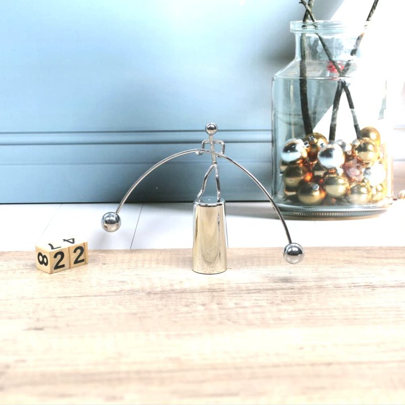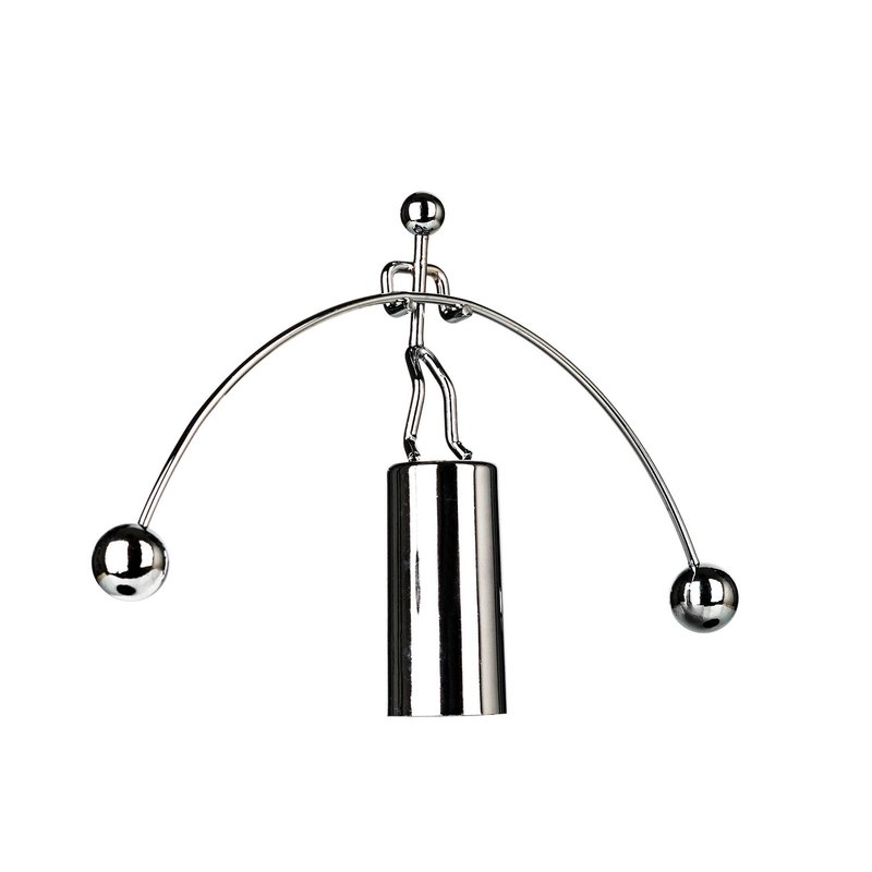 Balancing toys were popular in the 19th century. Dating back to ancient China and India, where they were most often carved from soft wood, the western balancing toys were traditionally made from tin or metal. Illustrations of balancing toys can be found in educational literature from the 18th century. The physics governing the movement of such toys intrigued and amazed people. Balance toys came in various forms, and our particular shape is traditionally.