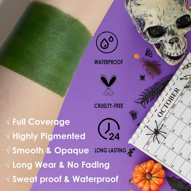 SUNNYVALE Halloween Wicked Witch Green Face Body Paint Stick Cream, Dark Green Eye Black Football for Sport Accessories, Hypoallergenic Grease Foundation Cosplay Hulk Camo Hunting Painting Makeup