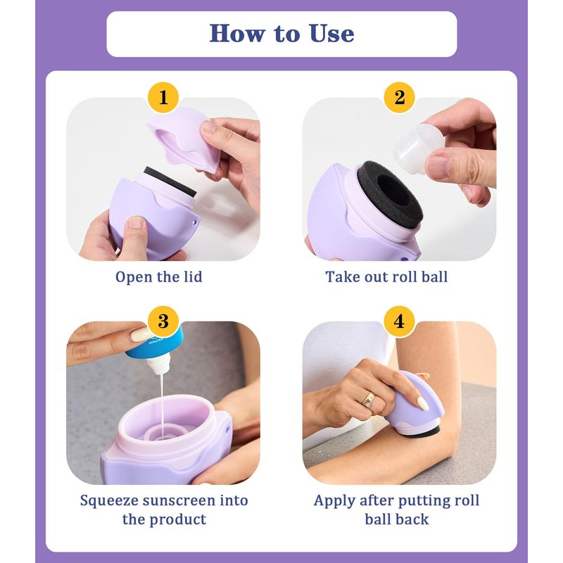 - Easy To Use and Very Comfortable : This sunscreen roller applicator is engineered for simplicity, making it easy for kids to use. Fill it with your chosen sunscreen, shake, and apply. The roller ball ensures even distribution, while the sponge aids in smooth application. Features include being BPA-free and having coating for safe use.