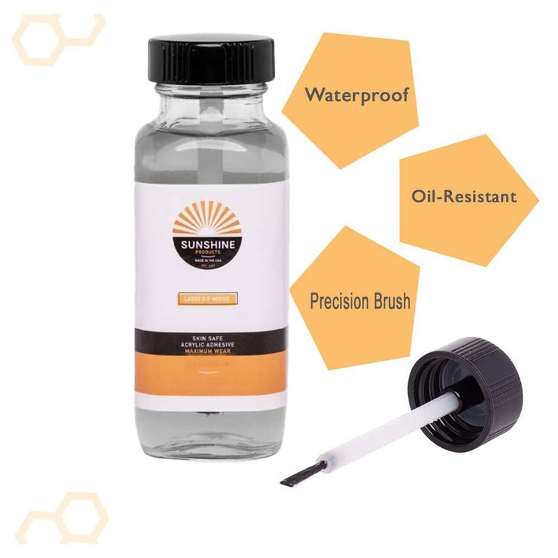 One of the strongest skin-safe acrylic adhesives on the market, Sunshine Skin Safe Maximum Wear Acrylic Adhesive is a clear, extended-wear adhesive that provides a solid three-to-five-week bond. The compact glass bottle can easily be carried in a pocket or purse, making it ideal for touch-ups, travel, and emergency situations. 50-ounce glass bottle.