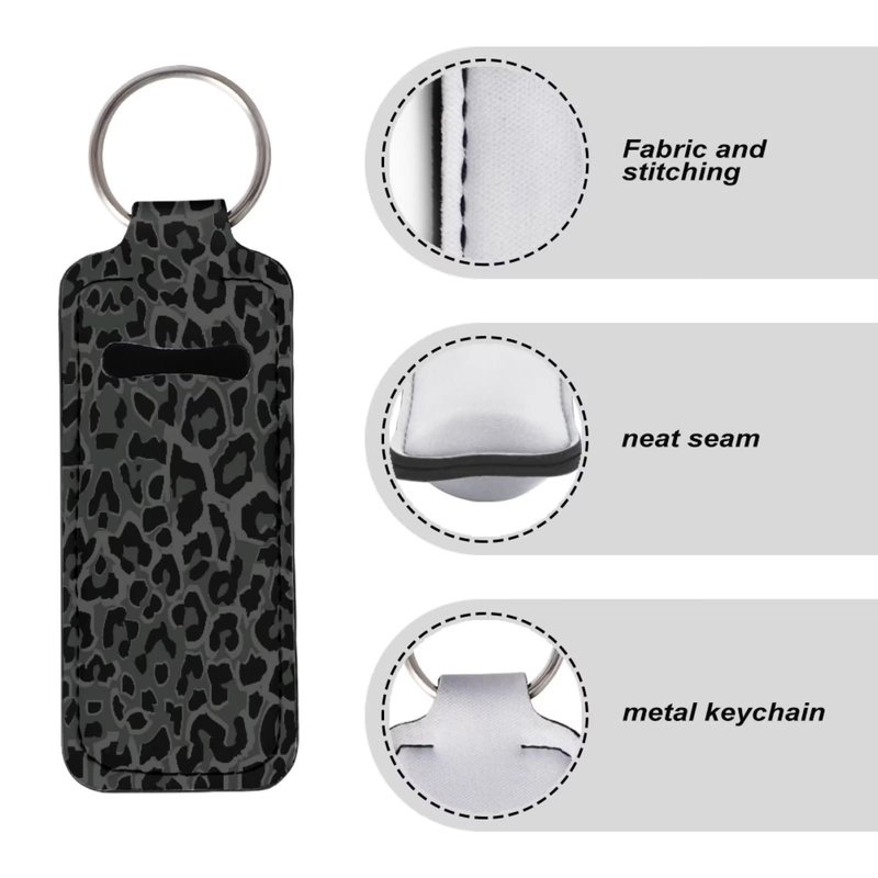 Suobstales Black Leopard Chapstick Holder Keychain Neoprene Lip Balm Holder Wild Animal Cheetah Skin Print Lipstick Sleeve Pouch Lip Balm Portable Pocket Lip Gloss Tube Holder Travel Accessories