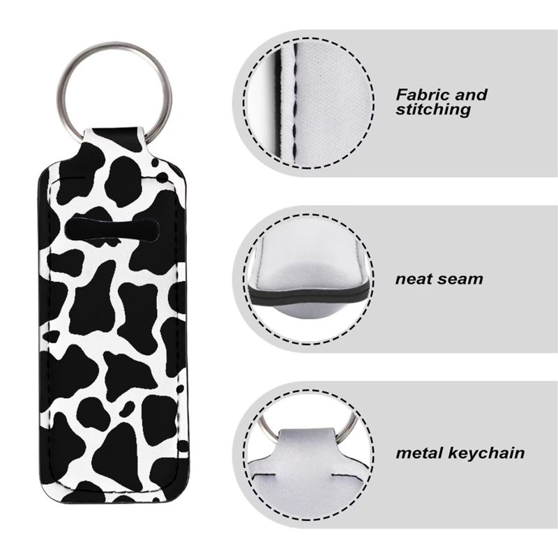 Suobstales Cow Print Chapstick Holder Keychain Neoprene Lip Balm Holder Black White Animal Print Lip Gloss Keychain Portable Chapstick Tubes Holder Pocket Keychain Bag Lipstick Case