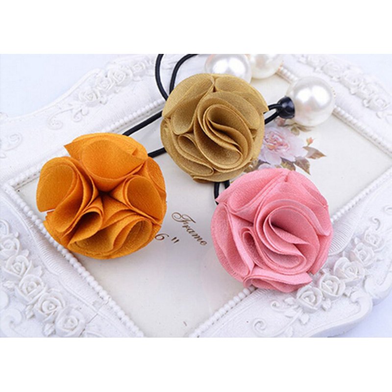 Suoirblss 5 PCS Hair Accessories Women Satin Ribbon Rose Flower Imitation Pearl Ponytail Hair band (Color random)
