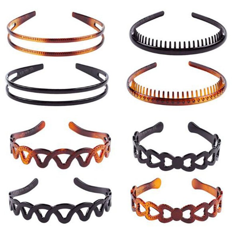 Suoirblss 8PCS Plastic Tooth Hair Comb Headband Hard Headbands Ribbon Hairband Women Men Hair Accessory (style01)