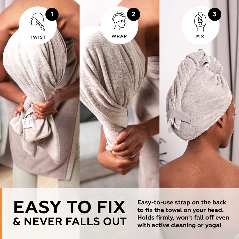 Taking care of healthy curls without breakage, frizz or drying out thanks to gentle and absorbent texture of quality microfiber Reducing drying time by 50% so you always have time to relaxing, self-care and family Comfort hands-free multi-tasking with easy-to-use strap to fix the towel on your head. Holds firmly, won't fall off even with active cleaning or yoga! Size 20x40 inch - for all hair types and lengths, including yours! Super-soft and light, so at only 7.5 oz you almost doesn't feel it on a head. Ideal for wrapping, plopping and squeezing. One towel for all techniques. It's a win-win for your curls! Microfiber drying towel, hair wraps for women wet hair, hair turbans for wet hair and hair drying towel - is mostly popular hair care hair products, or curly hair products. Curly hair towel, hair turban and microfiber hair towel for curly hair is curly girl method approved products, so you always know that your coils, waves or tight thick textured hair is healthy. Even if thin, fine and small curls you can make plopping and wrapping, because of large microfiber towels. The perfect haircare towel, we think it better then shower cap for curly hair. Just wrap, twist and tuck with our elastic band. Can be used on shower or bath. Best rapid dry towels with buttons for magic plop and care, toalla para cabello, towel for wrap around for black african american woman, mujer, kids, man