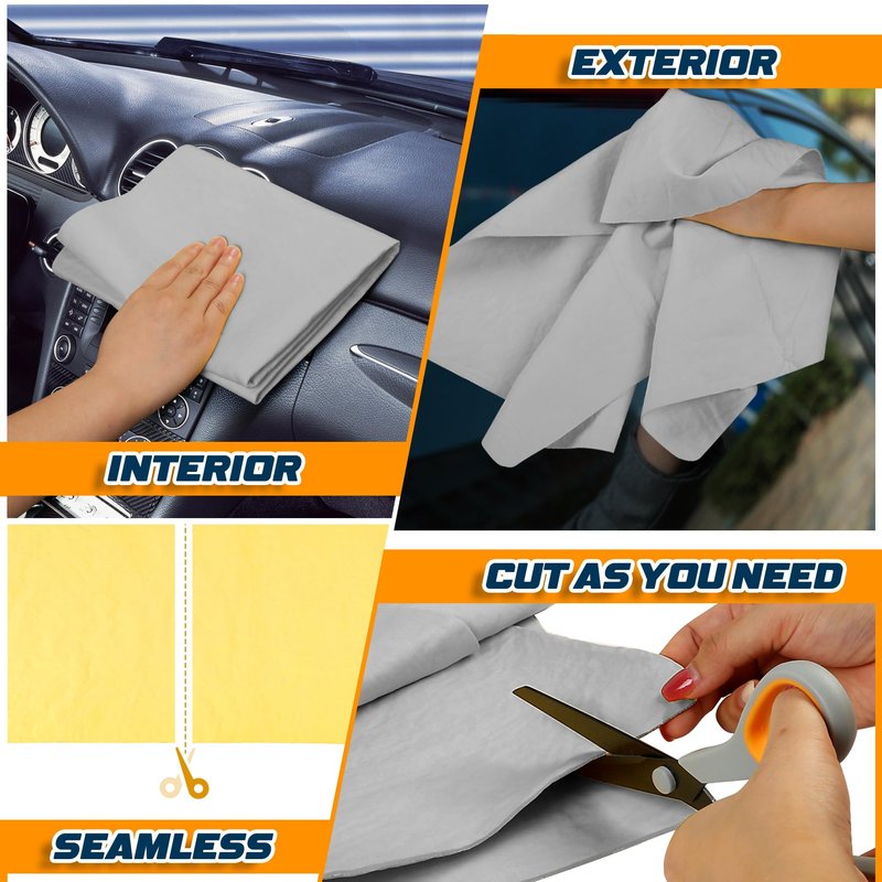 - 【Seamless and Easy to Cut】Idemeet chamois cloth is produced by integrated injection molding technology, which ensures better stable, and reliable product quality. The 26'' x 17'' size towel is perfect for drying your car's surfaces. Also, our chamois cloth allows you to cut it to the desired size for cleaning small surfaces like your car mirrors and seats, leaving your car gleaming from the inside out