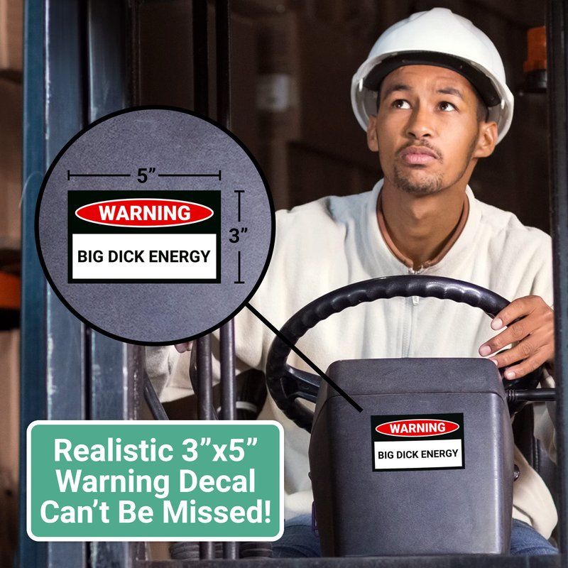 Warning! Side effects of these prank decals may include gut-busting laughter, crying from laughing so hard, and having too much fun. Although rare, may also result in loss of friends. Slap one of our joke warning stickers on any vehicle - a boat, motorcycle, ATV, or piece of heavy equipment and you'll be laughing until the cows come home. What says "Big Dick Energy" better than swinging around the boom of a backhoe?