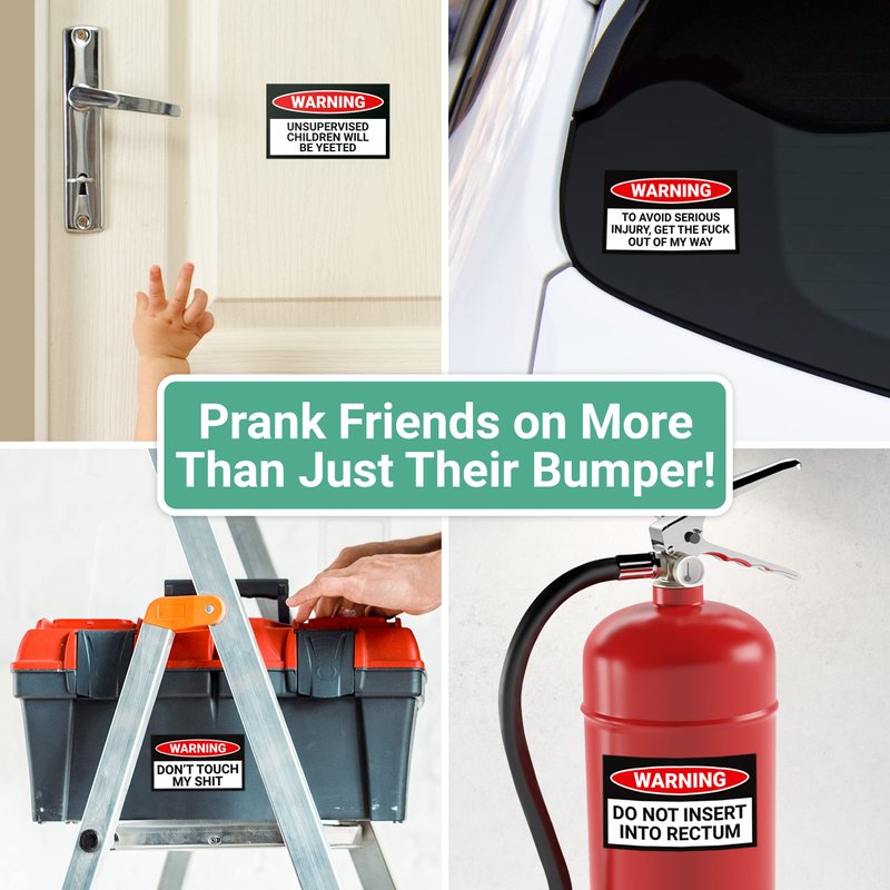 - WARNING: THESE STICKERS WILL CAUSE UNCONTROLLABLE LAUGHTER. Play the perfect prank with these funny warning decals. Laugh your ass off as you watch your friend frantically try to explain to the girl next door he doesn't actually have herpes. Awkward.