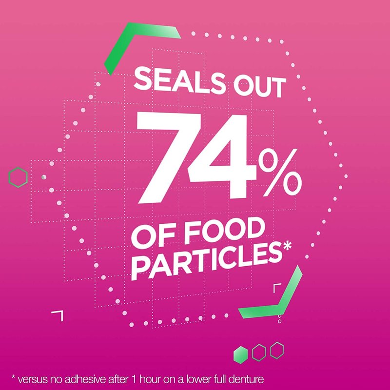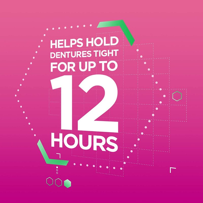 - Super Poligrip Original Denture Adhesive Cream offers a strong 12 hour hold that seals out up to 74 percent more food particles (versus no adhesive after 1 hour on a lower full denture)